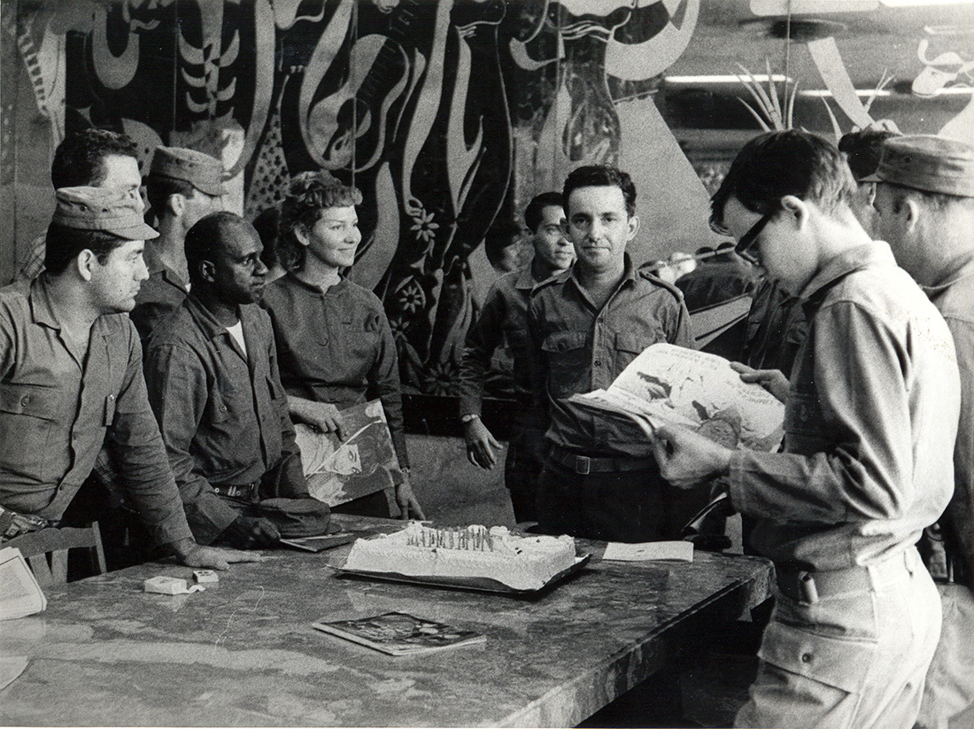 | 1967, cumpleaños en la revista Verde Olivo, Pavón mirando a cámara |